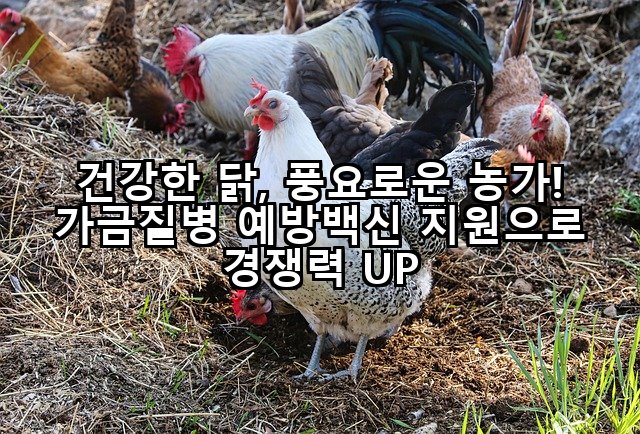 국내 닭 사육농가의 안정적인 생산 활동과 축산 경쟁력 강화를 위한 희소식이 있습니다. 바로 가금질병 예방 시스템 구축을 위한 지원 사업인데요. 특히 닭 사육농가의 주요 위협 요소 중 하나인 감보로병으로부터 가축을 보호하고, 농가 소득을 증대하는 데 실질적인 도움을 줄 예방백신 지원 사업이 상시 운영되고 있습니다. 이 지원은 질병 발생을 사전에 차단하여 건강한 닭을 키울 수 있도록 돕는 매우 중요한 정책입니다.